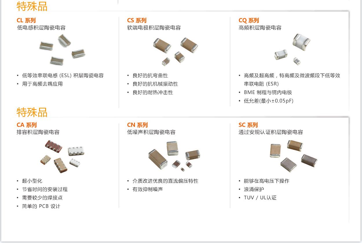 國巨貼片電容:通用型陶瓷電容,車用電容,高頻電容,軟端電極電容,微型化電容,排容,低感值電容