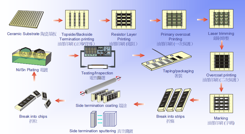 目前厚膜貼片電阻器生產量使用量占絕大部分。種類
